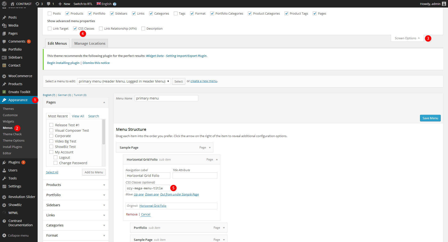 5. Expand desired menu item and add “ozy-mega-menu-title” CSS class definition into CSS Classes box.